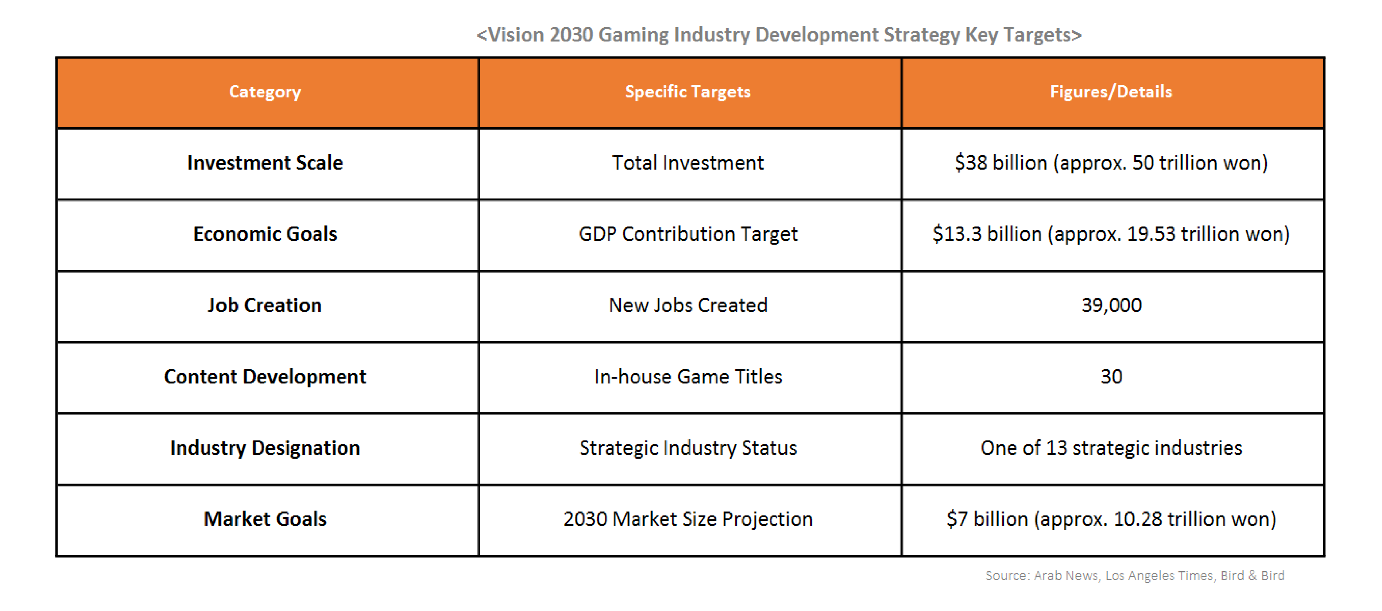 • Saudi Arabia’s gaming industry development strategy includes specific numerical targets: creating 39,000 new jobs by 2030 and increasing the gaming industry’s GDP contribution to $13.3 billion (approx. 19.53 trillion won).