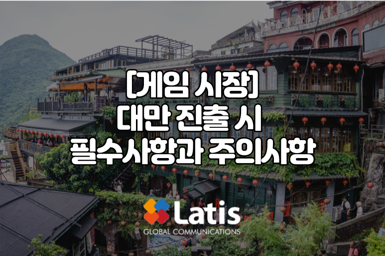 [게임시장] 대만진출 시 필수사항과 주의할 점 안녕하세요. 토탈 게임 서비스 전문 기업 Latis Global Communications입니다. (이하 라티스글로벌) 라티스글로벌은 귀사의 성공적인 해외 진출을 위한 든든한 글로벌 파트너입니다. 오늘은 게임에